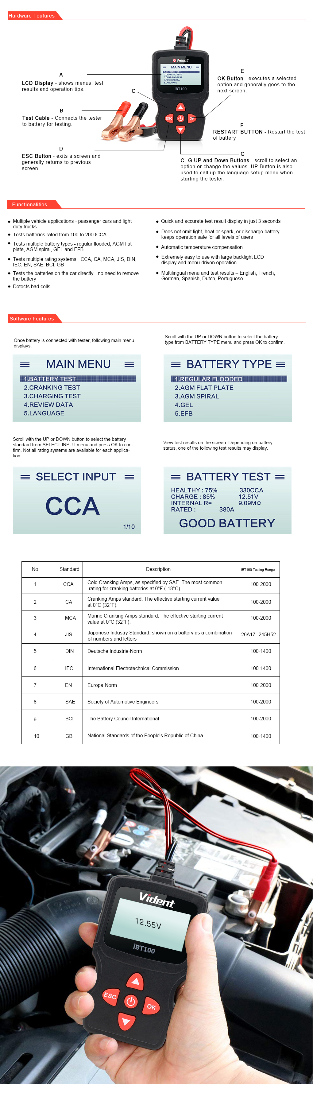 | Standard support | CCA, CA, MCA, JIS, DIN, IEC, EN, SAE, BCI, GB | N/A | |